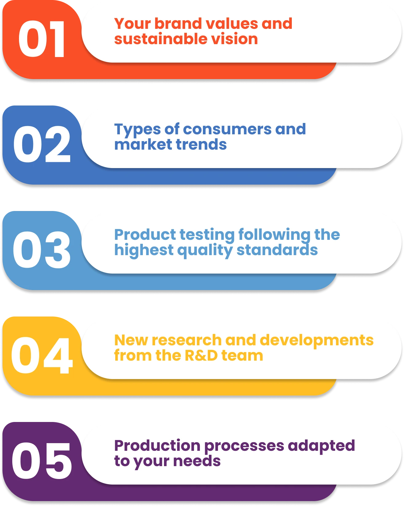 We offer expertise in user-centered food design, rapid prototyping, and advanced testing, enabling our clients to efficiently integrate our ingredients into their products.